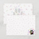 A puppy paw print covered with confetti and streams. Blank note cards.