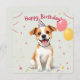 Happy Birthday Dog with Party Hat & Balloons Card