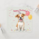 Celebrate a special day with this adorable Happy Birthday design featuring a cute dog in a party hat with balloons on a soft grey background. Perfect for dog lovers, kids, or anyone who enjoys playful and heartwarming birthday art. This charming pup brings smiles to any celebration.