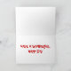 This card is great fun and good quality. I loved the humour inside and on the back. There is the opportunity to change the orientation of this card from landscape to portrait, which I did. It is relatively straightforward to amend the typeface to fit the new orientation. It was well packaged with no plastic. The printing on this card is excellent.