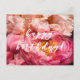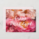NewParkLane - Elegant Postcard, with a photograph of pink, and coral peonies in full bloom with a painterly flair, and a 'Happy Birthday!' wish in elegant calligraphy typography.