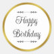 Happy Birthday Elegant White and Gold Border Classic Round Sticker