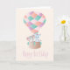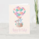 Happy Birthday Elephant Rhinoceros Hot Air Balloon Card