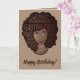 This design features "Queen, phenomenal, beautiful, smart, magic, boss, loving, sexy, independant, funny, creative, and strong" nested in her afro, with layered necklaces on a brown background. Inside the card says "HAPPY BIRTHDAY!"