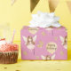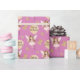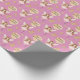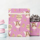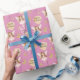 Pretty pattern of a fairy girl holding a balloon with butterflies. “Happy Birthday” text shown in black script letters. Design is on a pink background. This gift wrapping paper will surely make any child’s gift presentation very special.