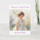 A cute fairytale themed birthday card for a little girl. Inside is a sweet poem. The front has a little fairy girl surrounded by flowers in pretty sage green and purple colors. All text on this birthday card can be edited. You can add her name in the personalize area.