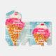 Ice cream cone on blue background with text.