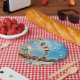 Relive the childhood memories of soft breezes, happy screams, and birds-eye views. Remember the fun while celebrating birthdays using this orange, turquoise, & blue ferris wheel and roller coaster photography paper plate.
