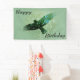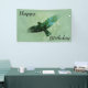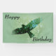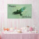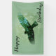 This cloth banner has an altered photograph of a flying transparent black crow against faded tree tops on a green background. Customise the Happy Birthday text with the templates.