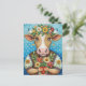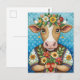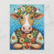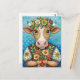 A folk art style illustration of a cow with a heart, the perfect postcard for birthday and other congratulations to show your love to a cow lover.