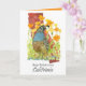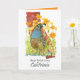Happy Birthday greetings from California decorated with the valley quail strolling through a patch of blooming poppy wildflowers hand painted in bright orange over the state shape painted in brick red watercolor. On the inside is a shade of bright orange and text you can edit to fit your needs. A great way to say happy birthday from "The Golden State!"