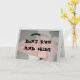 This card is great fun and good quality. I loved the humour inside and on the back. There is the opportunity to change the orientation of this card from landscape to portrait, which I did. It is relatively straightforward to amend the typeface to fit the new orientation. It was well packaged with no plastic. The printing on this card is excellent.