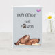 This card is great fun and good quality. I loved the humour inside and on the back. There is the opportunity to change the orientation of this card from landscape to portrait, which I did. It is relatively straightforward to amend the typeface to fit the new orientation. It was well packaged with no plastic. The printing on this card is excellent.