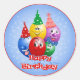 Happy Birthday, funny balloons colourful design with red circle frame.