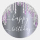 Happy Birthday glitter silver purple sparkle glam Classic Round Sticker