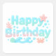 Happy Birthday Glossy Ocean Pastel Text Square Sticker