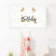 This banner showcases the words "Happy Birthday" in a unique print font with black letters with birthday party decals throughout such as balloons, gifts, confetti and more in this birthday theme and style. This banner has single side printing outdoor safe measures 3"x5" made with an elegant matte finish and is both fade and tear resistant for Indoors or outdoor use great for advertise anything, from birthdays to graduation, weddings to anniversaries. Hemmed and thermally welded edges for neat finish outdoor banners can be bought with metal grommets.