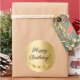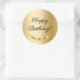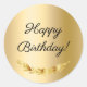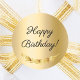 A faux gold looking background. Black text: Happy Birthday! Decorated with faux gold leaves.