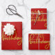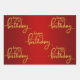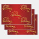 Make your birthday gifts extra special with this set of three 19” x 29” semi-gloss wrapping paper sheets with an image of the phrase “Happy Birthday” in gold foil script on red. See the entire Birthday Wrapping Paper collection in the PARTY FAVORS section.