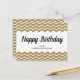 Happy Birthday Gold Glitter White Chevron Stripes Postcard