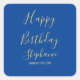 Happy Birthday Golden Yellow Blue Custom Name Square Sticker