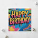 Celebrate in style with this vibrant "Happy Birthday" graffiti wall, bursting with bold colors and dripping paint effects. Featuring stylish sneakers in pink, blue, and yellow, this energetic street art design is perfect for hip-hop themed parties, urban celebrations, or anyone who loves dynamic, colorful aesthetics.