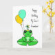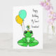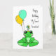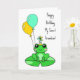 Birthday Card. Personalised Birthday card with cute frog on a lily pad in a birthday hat with balloons.