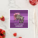 Paper napkins for a birthday party, featuring a greedy racoon with a full belly, reclining against the remains of the chocolate birthday cake it's been eating. For fans of cheeky but cute animals, or a baking expert. Inspired by my own inability to leave cake alone, and also by a comedy movie with a racoon cake eating incident. Change the default "HAPPY BIRTHDAY SARAH!" text to your preferred name & message.