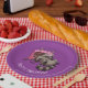 Paper plates for a birthday party, featuring a greedy racoon with a full belly, reclining against the remains of the chocolate birthday cake it's been eating. For fans of cheeky but cute animals, or a baking expert. Inspired by my own inability to leave cake alone, and also by a comedy movie with a racoon cake eating incident. Change the default text to your preferred name, message or caption.