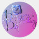 "Happy Birthday!" Hand-written Blue 3D Rose Classic Round Sticker