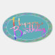 "Happy Birthday!" Hand-written Gradient Rainbow Oval Sticker