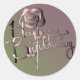 "Happy Birthday!" Hand-written Gradient w Rose Classic Round Sticker