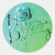 "Happy Birthday!" Hand-written Green 3D Rose Classic Round Sticker