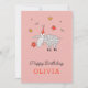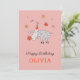 This Happy Birthday Card features a cartoon illustration of cute funny Sheep wearing birthday hat, holding the red flower and surrounded by butterflies. Great Card for kid's (girl) birthday! You can easily personalize the text (greeting and name) at the lower part of the card using Zazzle online tools. If you need help to personalize this card, don't hesitate to contact me via Zazzle, please.