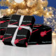 Cool, red guitars on a black background, are featured on this cool, birthday gift wrap for a husband!