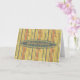 A pattern of blue, green, red, and yellow stripes in varying thicknesses is sprinkled with small flowers. On this background appears a matching blue oval medallion trimmed with a decorative floral border; this bears the words, "gelukkige verjaardag", the Dutch for "happy birthday" . Edit the inside to suit your sentiments.