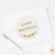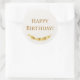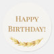A soft ivory colored background. Text: Happy Birthday! Decorated with faux gold leaves.