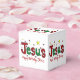 ►IMAGE: Bright red and green hand-drawn crayon Name of Jesus surrounded by happy yellow twinkle lights and joyful red hearts. This happy image sends a message of Christmas cheer. . . ►COLORS: Red, Green & Yellow Christmas colours ►TEXT: “Happy Birthday Jesus”.. . . ►Design appeals to men, women and children; All ages, Believers in Jesus Christ and the Christian Religion. Stocking Stuffers with this design support the Christmas Season being about Jesus Christ. (DESIGN by Paula Bragg)