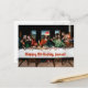 Happy Birthday, Jesus! Remake of Last Supper of Leonardo, Christmas theme with Jesus in red Santa hat, bottle of champagne and Christmas cake.