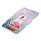 White kitten sits behind a cupcake and meows out a loud Happy Birthday cat lovers flexible magnet. Text can be easily changed or removed