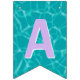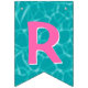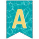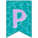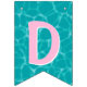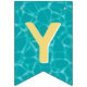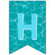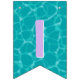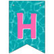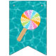 This bunting flags banner has teal blue water pool pattern background with the words "Happy Birthday" and 3 dessert pool floats. There is a ice pop, ice cream cone and a swirled lollipop. I have made this so you can customise the design with different fonts or hidden letters and add other floats. There are 4 other hidden floats to use depending on your message size. You can also make the pool pattern bigger or small on each flag. I hope the tops off your pool party decorations.
