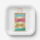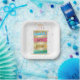 Celebrate in style with this unique square paper plate, featuring a beautifully illustrated watercolor cake with shimmering gold layers, falling confetti, and festive candles on top. The words “Happy Birthday” add a cheerful touch to this elegant design, making it the perfect choice for any birthday celebration. Elevate your party decor with this artistic and festive plate that’s both functional and memorable.