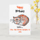This card is great fun and good quality. I loved the humour inside and on the back. There is the opportunity to change the orientation of this card from landscape to portrait, which I did. It is relatively straightforward to amend the typeface to fit the new orientation. It was well packaged with no plastic. The printing on this card is excellent.
