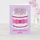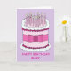 An illustration of a pink and white iced birthday cake, covered in lit candles and set against a mauve coloured background. The words 'Happy Birthday Mary' accompany the image.