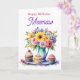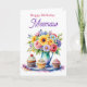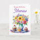 A beautiful personalized grandma's birthday card with a pretty watercolor illustration of a vase of colorful flowers and vanilla cupcakes. Inside is a sweet poem for Meemaw.