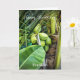 Happy Birthday Men Coconuts Trees Tropical Custom Card has Tropical Caribbean Virgin Islands green jelly coconuts that are ready to pick and drink. And if you look a little closer you might see a lizard exploring nature. Replace information with yours and give to that special person in your life. photo copyright Denise Bennerson photographer