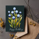 Happy Birthday minimal blue watercolor flowers Card. Simple round floral illustration birthday card.