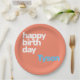 kids party paper plate 'happy birthday' your name, minimal simple modern blue white peach orange kids partyware minimalist plate for children, for that personal touch at your kids party with their name. bright and colorful color design