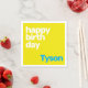 kids party happy birthday minimal simple modern blue white yellow minimalist napkin for children name boy or girl bright color colorful fun design