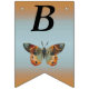This flag shaped bunting Happy Birthday banner is light blue in the centre with burnt orange at the top and bottom. A pretty monarch butterfly in blues, oranges and browns is on the flag. Customise the Happy Birthday text and birthday year with the templates.